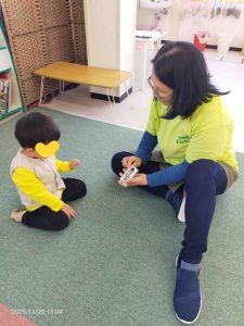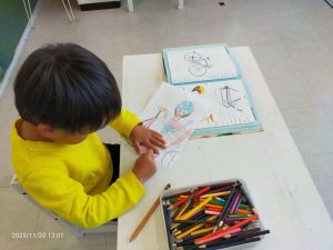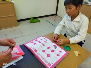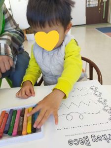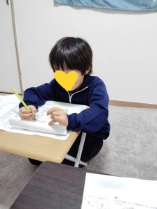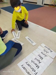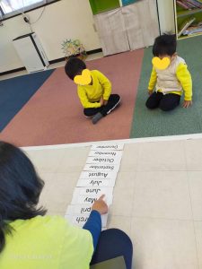 Eくん、サークルタイムでは月の名前や曜日の名前を並べ替えるのがとても上手にできました。