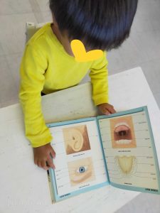 今日は図鑑を紹介しました。通常触れないような名称を知ることができます。私たち大人にもとっても役に立つ本ですね。Mくんは、クラッシュカードの練習で、文章にすることと、ジェスチャーを使って、発話と動作を同時に練習しました。すごくよくできていましたよ。