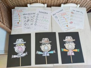 クラフトではかかしを作りました。案山子の名前の由来をお話したら、とっても興味を持って聞いてくれた二人でした。
