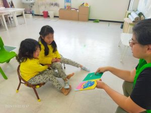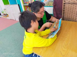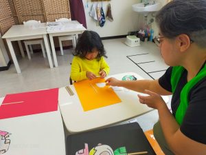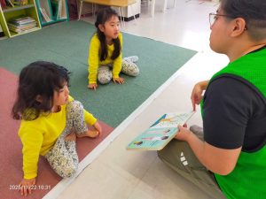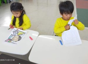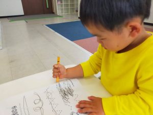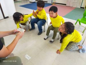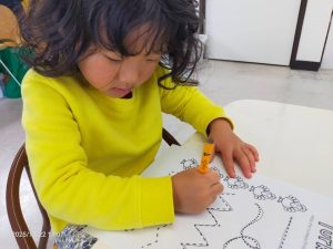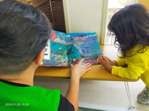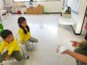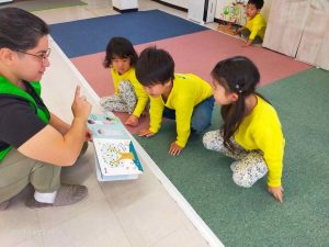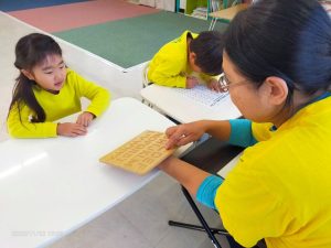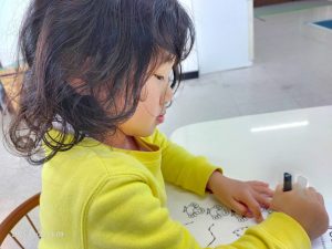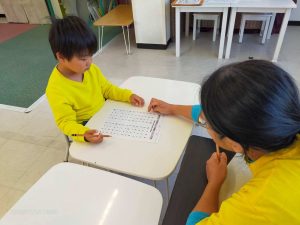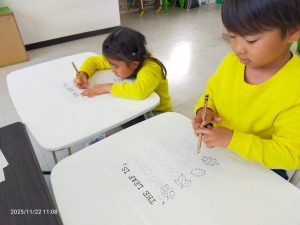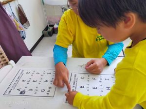 朝の時間は。アルファベットの練習や絵本で過ごしました。