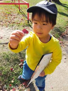出発前に練習したリストを片手に、Rくん、たくさんの秋を見つけてくれました🍁