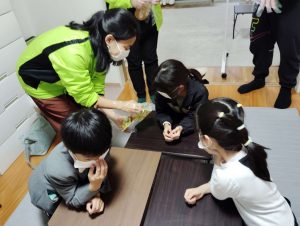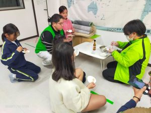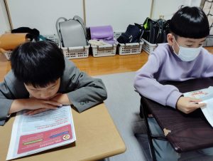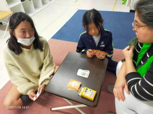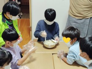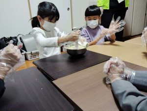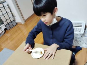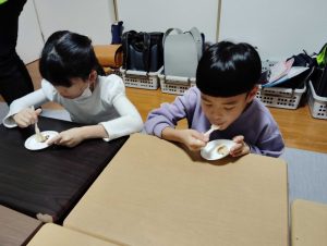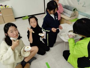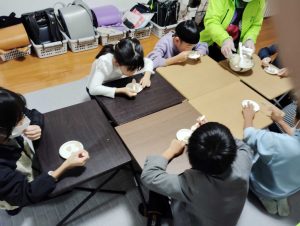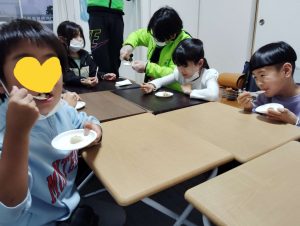 衛生面もしっかり気を付けて、みんなでその味を楽しみました。感想は・・・賛否両論でしたが、( ´∀` )楽しいアクティビティで、異文化を少しだけ垣間見ることができました。子どもたちが異文化のお話をしっかり読んで知った上で、こういうことを行えるくらいの英語力がついて来ていることが大変喜ばしいことですね。