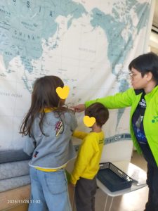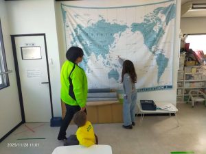 年上の子たちは、Thanksgivingがどの国でさかんなのかを世界地図で確認。