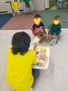 2年生の朗読に耳を傾けました。上手な先輩をお手本にがんばってね。
