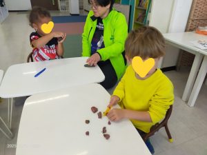 Tくんの強いリクエストで、ねんど遊びを楽しみました。みんな喜びました。