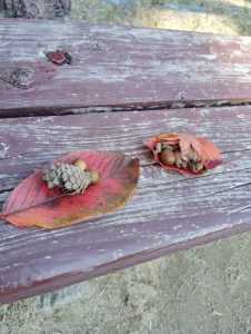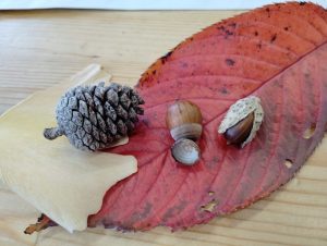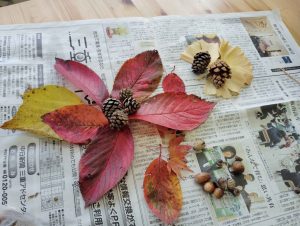 まん丸などんぐりや、まだまだきれいな紅葉、秋の忘れ物を持ち帰りました。