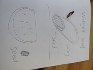 羽のついた種の話をしました。スイカを例にして話をしたら、意味を分かってもらいやすかったですね。