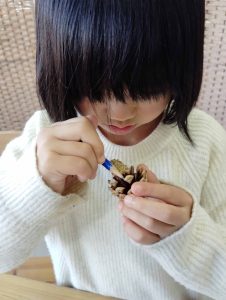 Mちゃん、夢中で松ぼっくりの中から種を取り出してくれていました(笑)