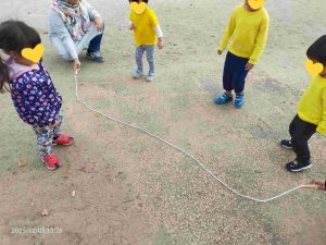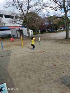 公園へ遊びに行ったら、見学体験に来てくれたUちゃんに出会い、一緒に縄跳びや砂場遊びを楽しみました。