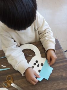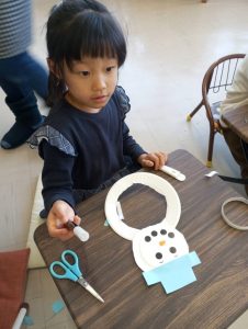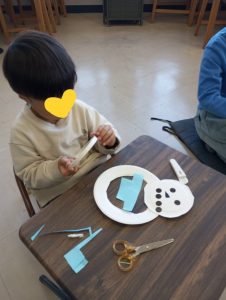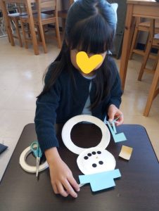 先日の雪の記憶も新しいうちに、今日は雪だるまのクラフトです。