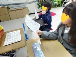 事試合後のプリスクールでは、来週待つのクリスマスパーティに向けてクリスマスソングの練習をしました。