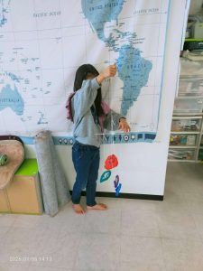 ヨーロッパのパズル。ヨーロッパってどこ?という質問に、二人が一生懸命世界地図とにらめっこ。こういう時間もとても大事です。