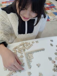 こちらはパズルに夢中。